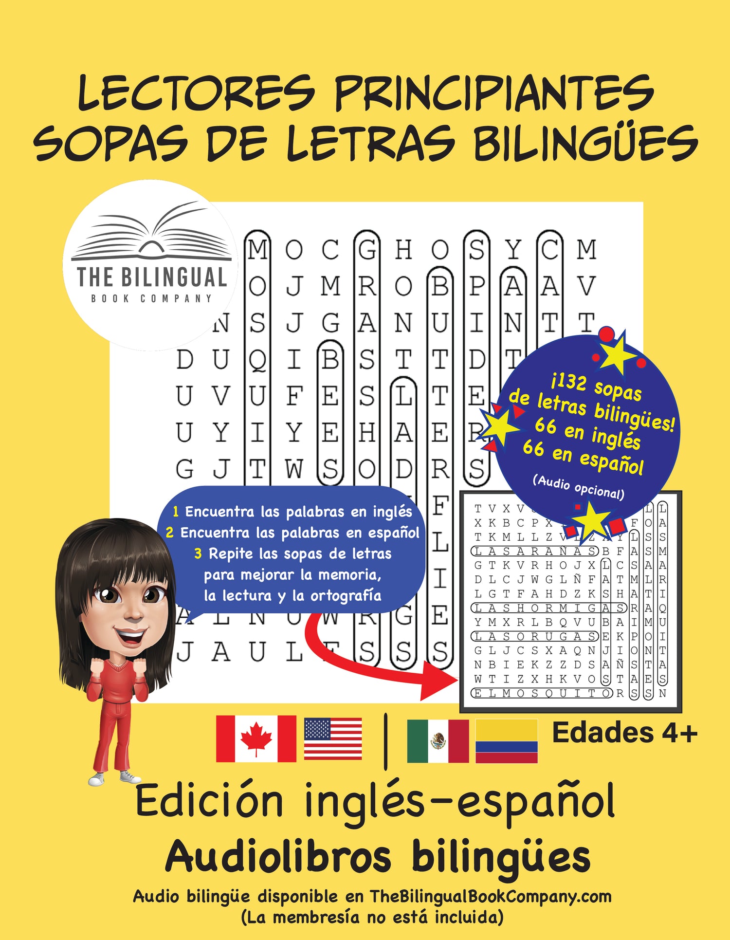 Libro de sopas de letras bilingüe inglés-español para primeros lectores